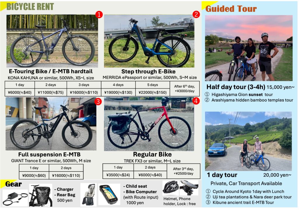 Kyoto E-Bikes, we offer high-quality electric-assisted bicycles and road bikes for rent, along with self-guided and fully guided tours, helping you design the best possible trip to Japan.